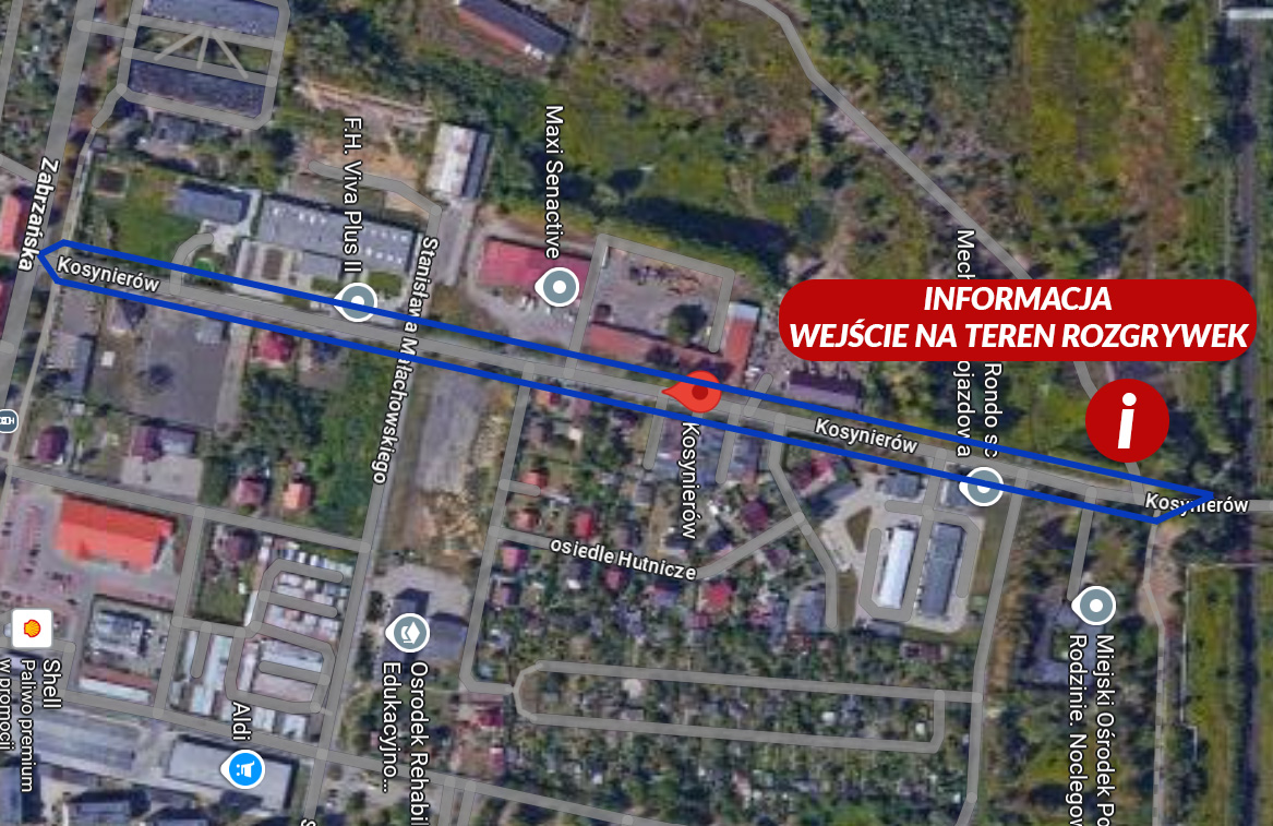 Parkowanie samochodów jest przewidziane wzdłuż całej ul. Kosynierów w Bytomiu (wjazd od ul. Zabrzańskiej). Wejście na teren rozgrywek znajduje się na końcu ulicy.